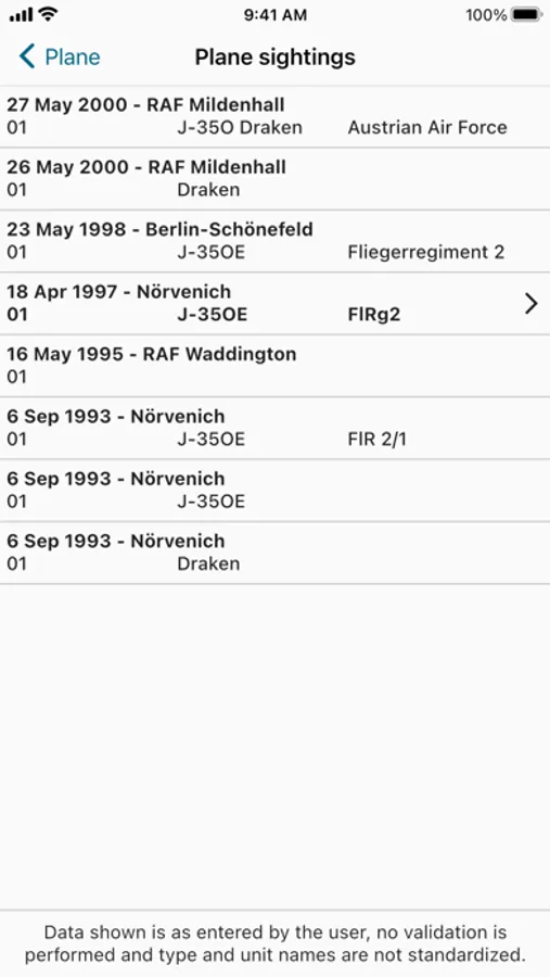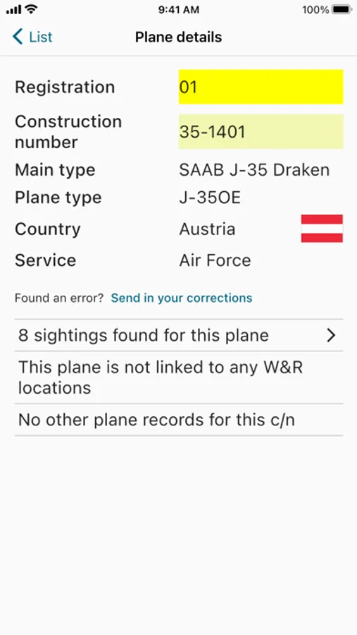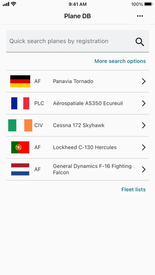 This app gives you direct access to the Spottingmode plane database. Search individual planes or full fleet lists. Check when and where a plane was seen, or where it can be found in a museum right now.