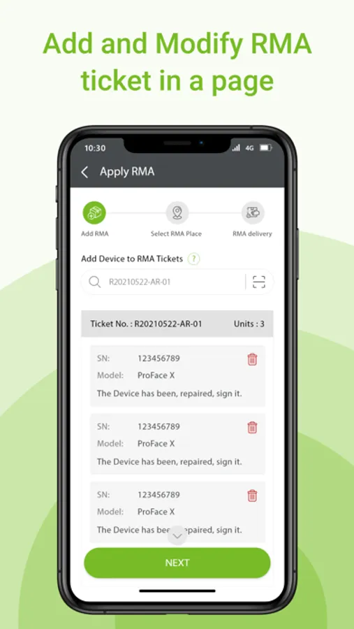 You can add multiple devices to a single ticket and the ticket creation process is very simple: