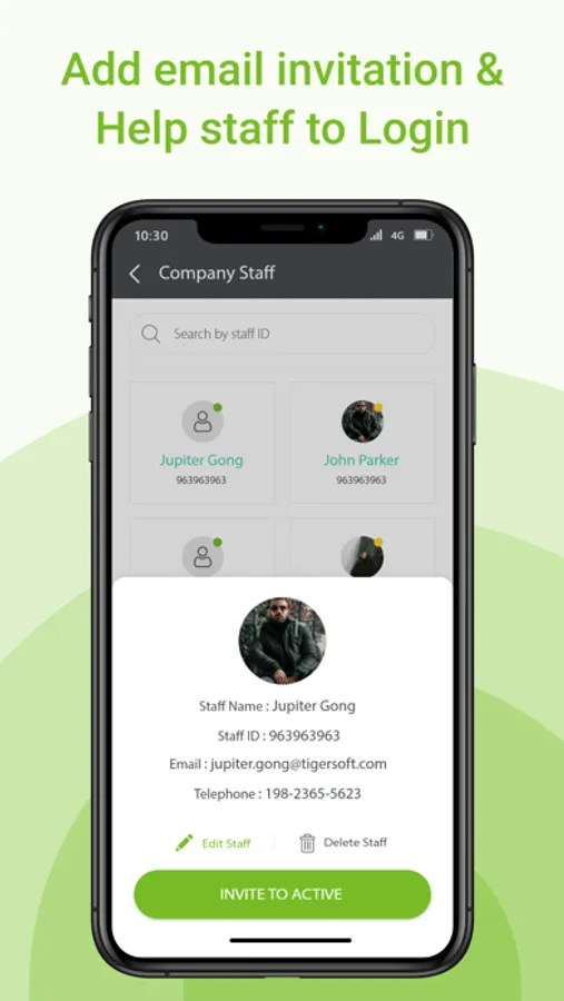 On the "Me" page, Distributor can manage Department, Staff, Admin, and RMA Operators and can invite Admin/Staff to log in to the App.