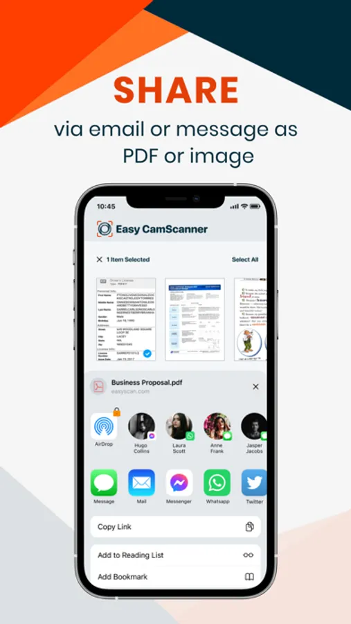 - Share: via email or messages as PDF or an image.