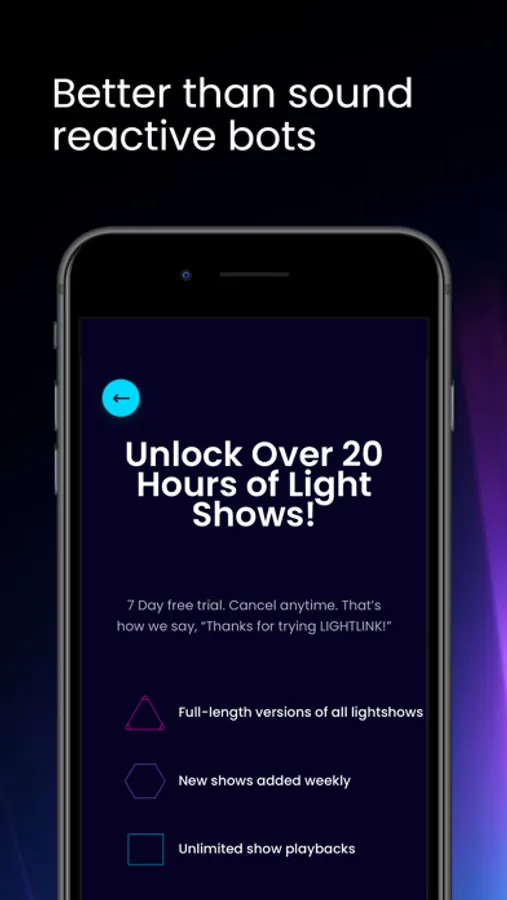 GOLIGHTLINK connects your Spotify Premium (Required) account with your Nanoleaf Lights to create an immersive and engaging light show in your living room. Elevate your experience beyond sound reactive or screen mirroring with light shows perfectly designed for each song.