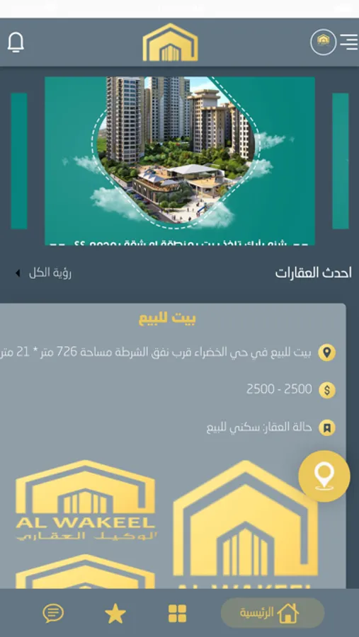 ولمواكبة التطور الحاصل والتوجه الى تسخير الاستخدام الاليكتروني لخدمة البشرية وذلك حرصًا على سلامة الناس من الاختلاط وعدم التعرض الى اي امور اخرى قد تأثر علية صمم تطبيق الوكيل العقاري بإمكانك اليوم استعراض جميع العقارات والمعروضة بصور عالية الدقه واضحة التفاصيل وايضاً بأمكانك طلب عرض عقار ليتم التواصل معك وارسال تيم عقاري لابرام العقد وتيم متخصص في التصوير لعرض كافة التفاصيل .