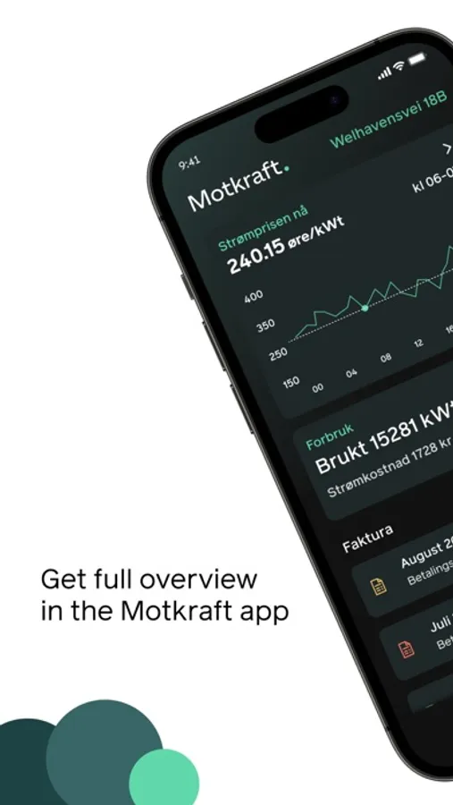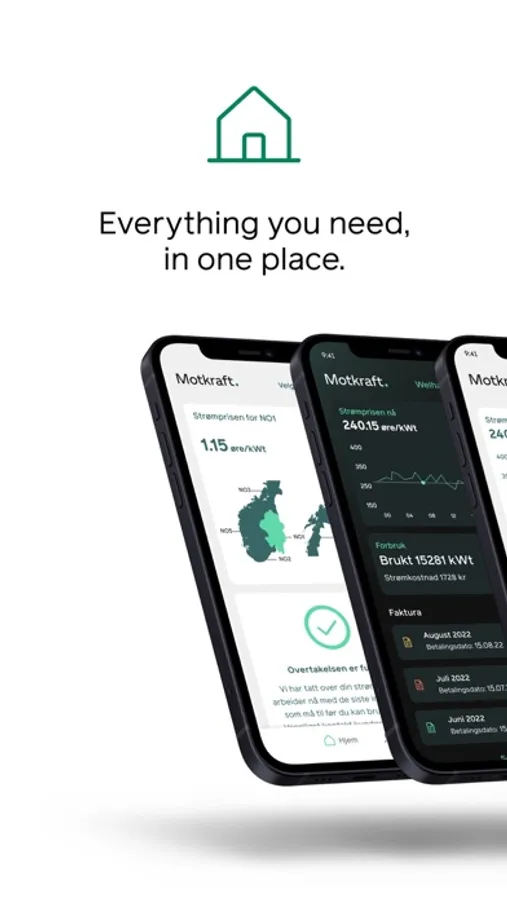 Welcome to Motkraft! We have designed our app to give you full control over your electricity consumption. With a simple click, you get a detailed overview and quick access to what you need.