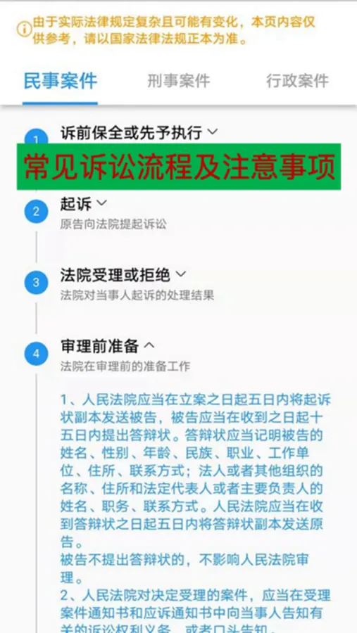 展示常见诉讼流程及各环节的要点及法律规定,诉讼过程了然于胸。