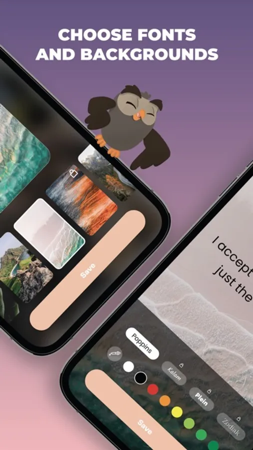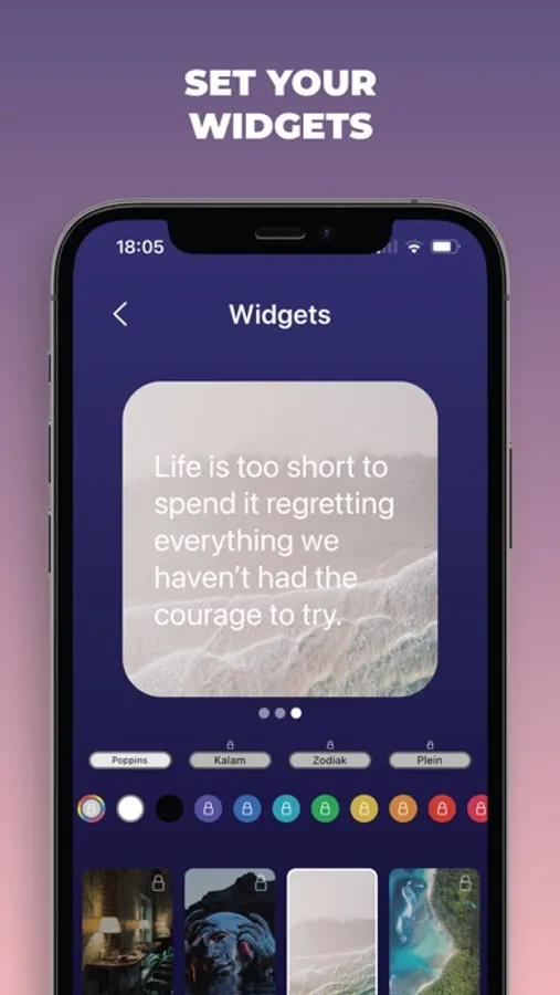 Choose between many categories, set and receive your daily quotes automatically and share your favourites on your social networks. And wow… you can also choose between tons of fonts and backgrounds!