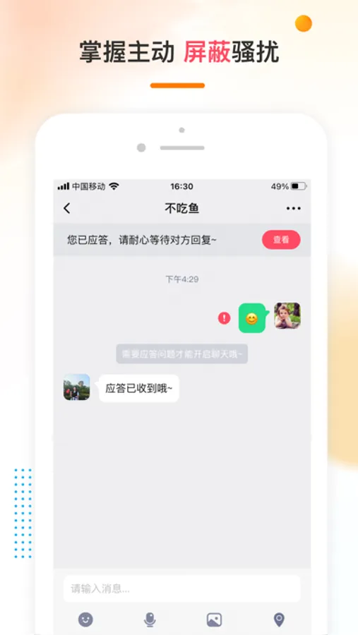 如何让单身男女破冰,打招呼是第一步,我们设计了简单的应答确认机制,欢迎大家来尝试!