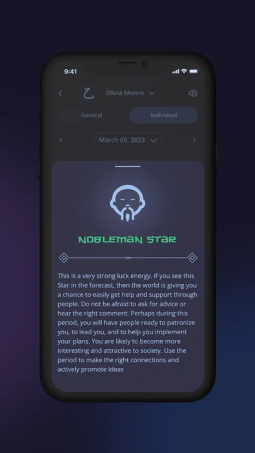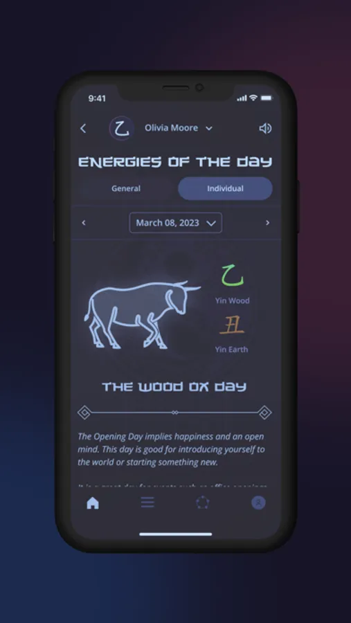- The app will show you the best energies of the day, month, and year. It will help to warn you about danger, estimate the possibility of buying real estate or improving your personal life.