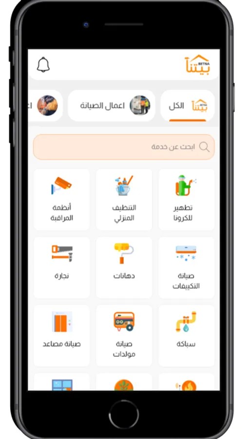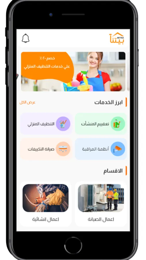 مع بيتنا يمكنك طلب الخدمة بكل سهولة من خلال التطبيق