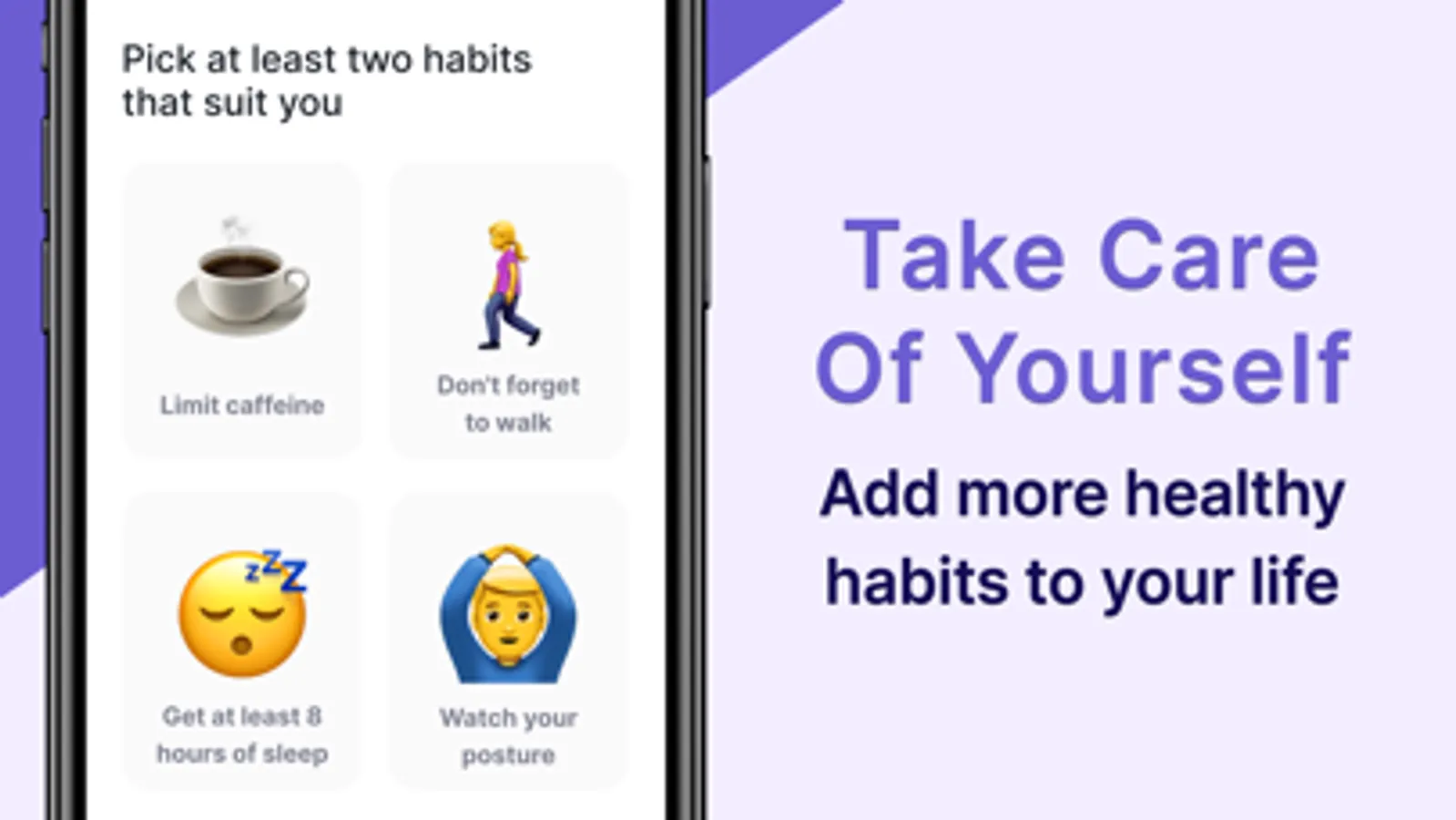 The app presents categories with habits. All you have to do is to choose a habit from the thematic category and set the right time for yourself.