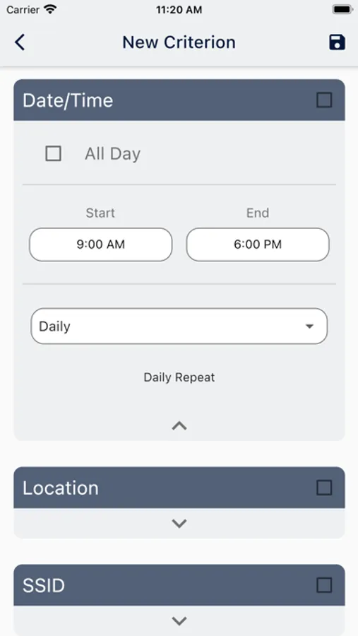 - Manage some restriction items (Criterion, Wi-Fi, Location)