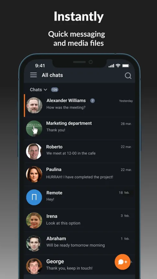 • Text and voice messages, photos, videos and files - choose the most convenient way to send information.