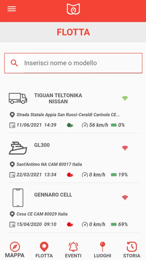 Momap Start è dedicata al monitoraggio delle flotte aziendali in tempo reale, una volta scaricata ed inserite le credenziali riservate ai clienti, sarete in grado di visualizzare la posizione esatta dell’intera flotta e per ciascun singolo mezzo con: nome della strada, città e cap , stato di connessione del dispositivo, km attuali del cruscotto, nome dell’autista identificato, km effettuati nella giornata, le singole soste e fermate, le ore di viaggio o lavoro, lo storico percorso.