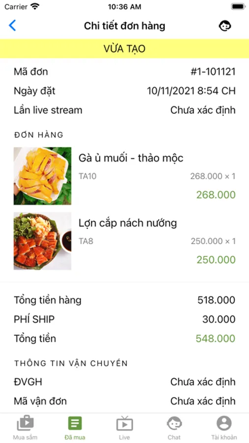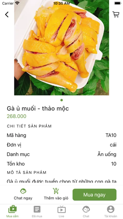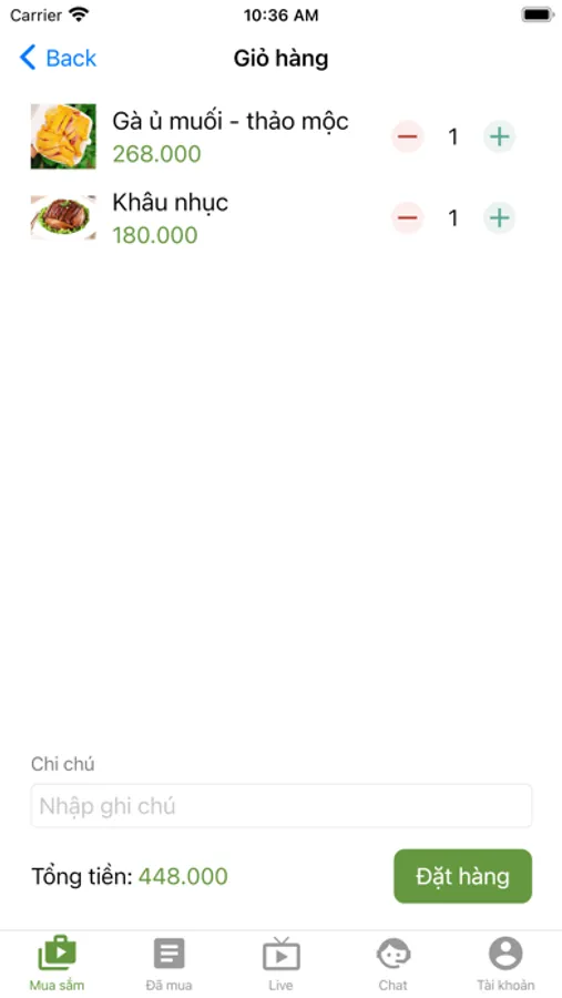 Đặt hàng: bạn có thể đặt hàng với danh mục sản phẩm của shop hoặc những mặt hàng bán trong lần livestream ma bạn chưa mua kịp khi livestream đang phát.