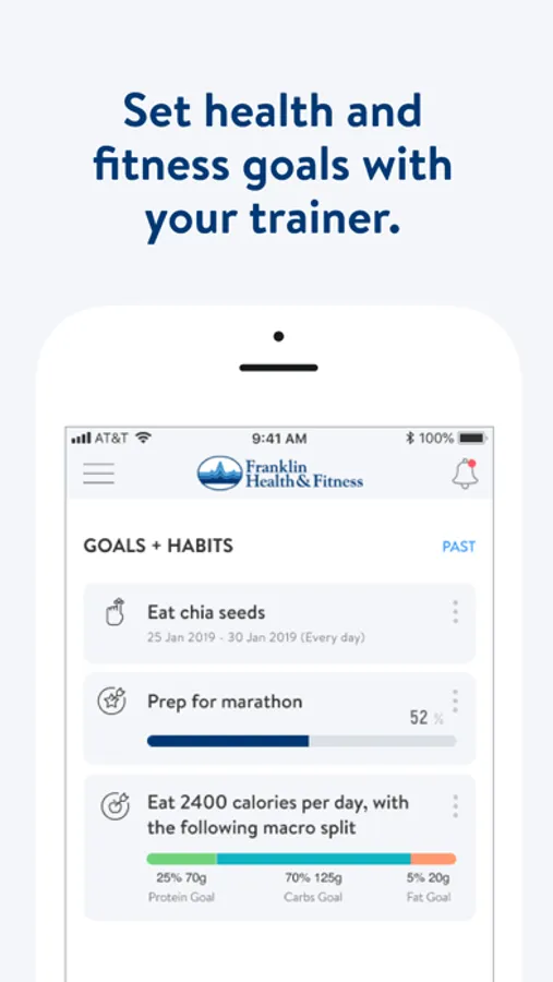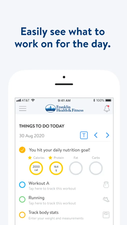 With the Franklin Health and Fitness App, you can start tracking your workouts and meals, measuring results, and achieving your fitness goals, all with the help of your personal trainer.
