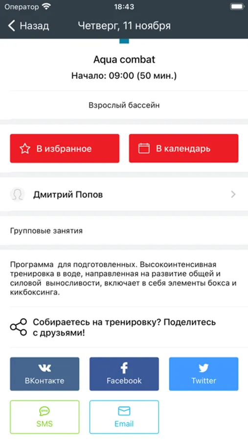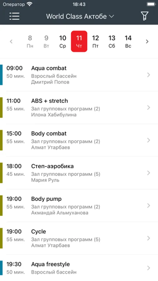 - Просматривать расписание групповых занятий в клубах, вне клубов и онлайн