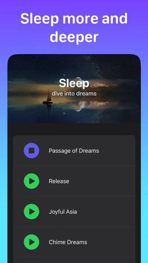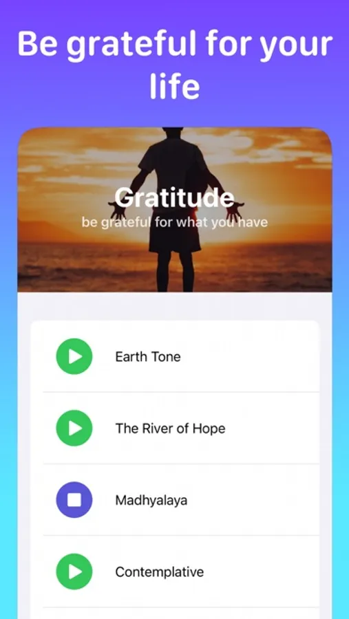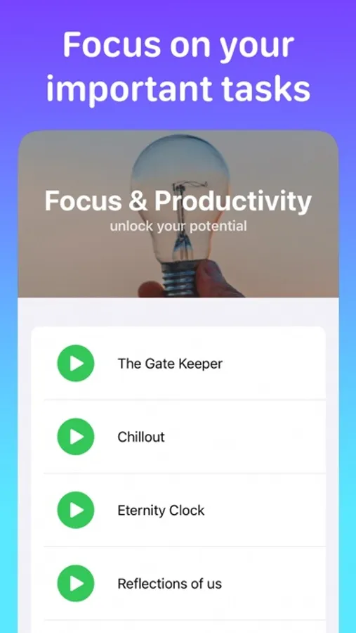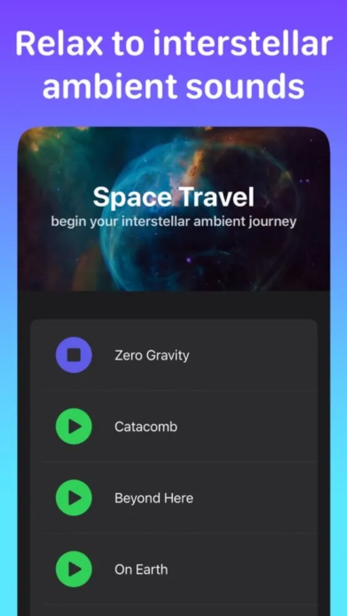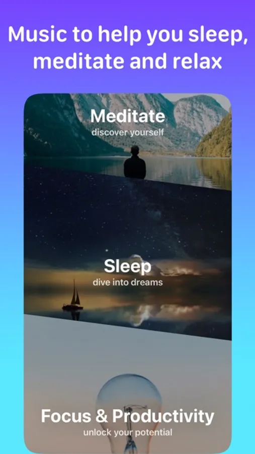 We provide a multitude of music categories, depending on what you need. Our app has music for sleep, focus, productivity, meditation, gratitude, and interstellar space travel.