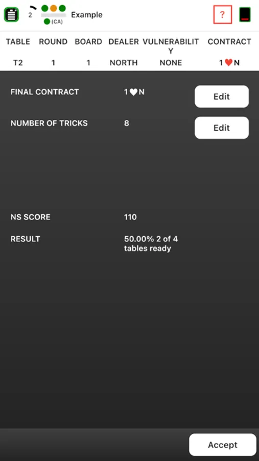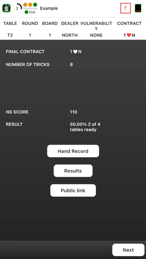 You can easily in the app register all bridge game details with a few clicks – select players, enter bid sequence or final bid, number of tricks, and accept game details - and instantly you can see all the game details and detailed results.