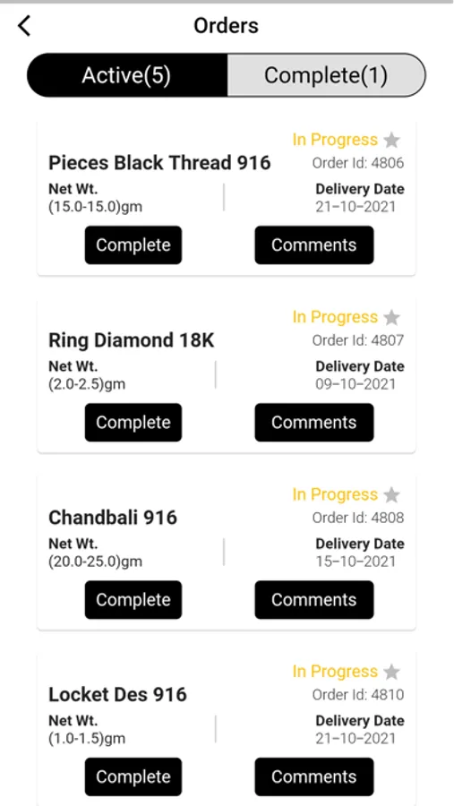 Swipe through thousands of jewellery orders, track status of order, cancel order, deliver order, call