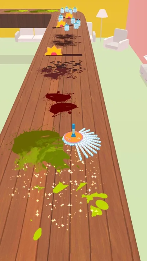 Can you clean up all the mess? You should have a bigger mop to clean more areas.