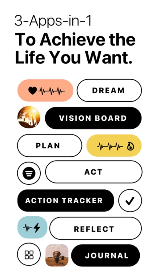 Every goal you add to Horizons has its own vision board, action tracker and journal.