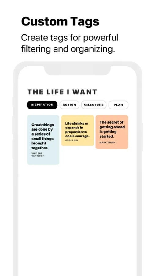 • Custom tags for powerful organizing and filtering