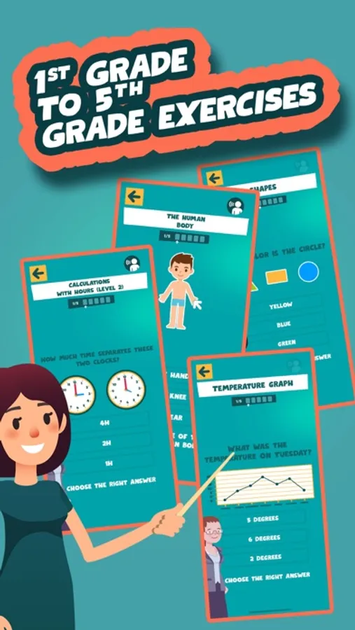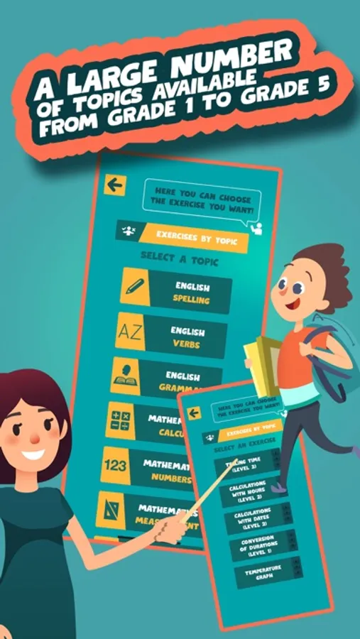 'EduKids: Elementary school at home' goal is to provide you, parents, with a simple, intuitive and complete tool to make your children work in a good mood. It covers Grades 1 to 5 (going through grade 2, 3 and 4 of course). Besides you will be able to track their progress.