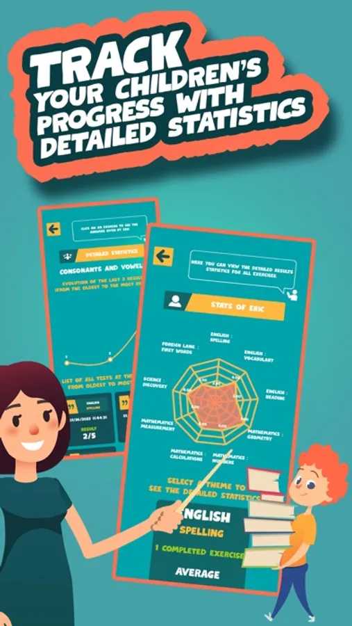 Every day, the virtual teacher gives 4 exercises to your child. These exercises are not chosen at random! Indeed, the teacher takes into account the topics that you have selected for your child so that he works on what he needs the most. The exercise program is adapted to the level of each child and is therefore personalized.