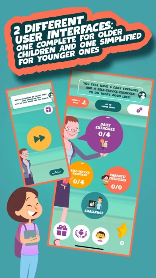 In both cases, the parent mode remains accessible and allows you to assign exercises to your children and to follow their progress easily.