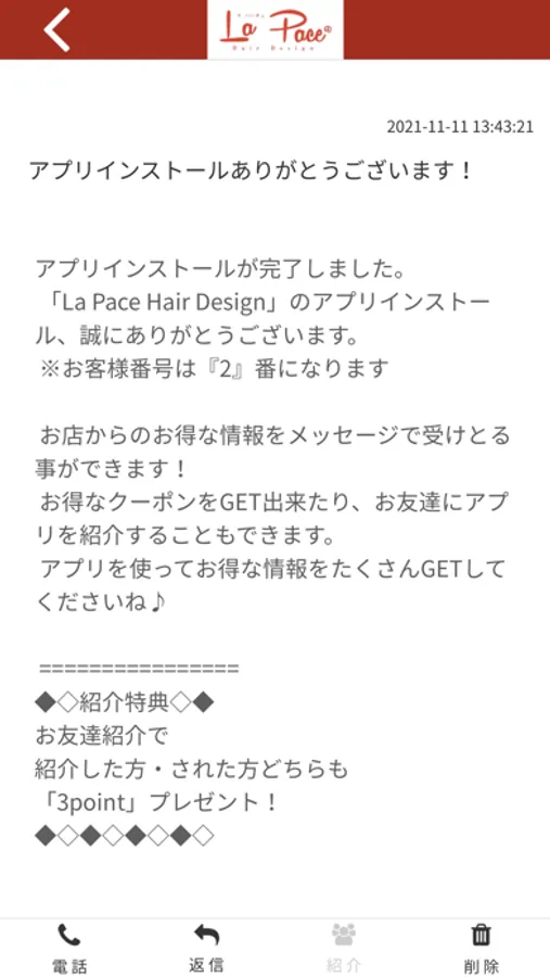 LaPaceのアプリをSNSを通じてお友達に紹介する事ができます。