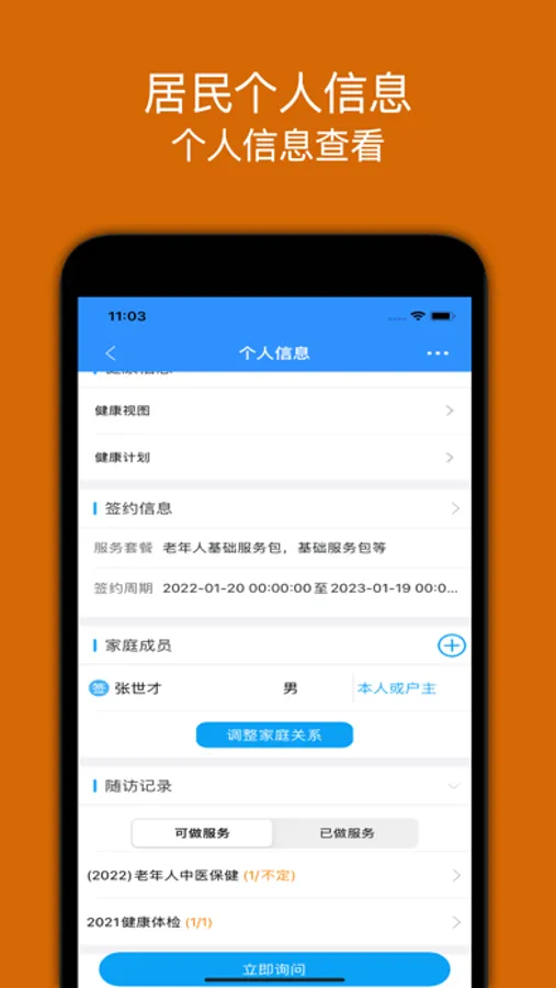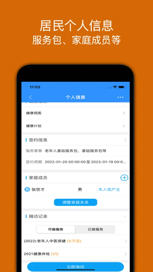 2、在线签约:摆脱办公室,随时随地在线获取签约居民并在线签约;