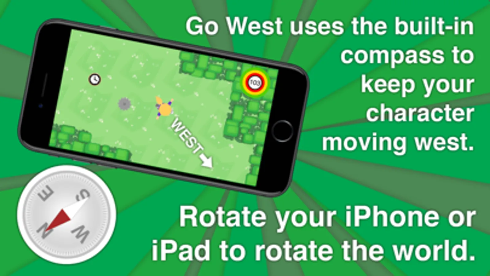 Rotate your iPhone or iPad to rotate the world around your character who keeps moving west. That's "real world" west, using the built-in compass, giving a level of fast and precise control not possible with other control methods.