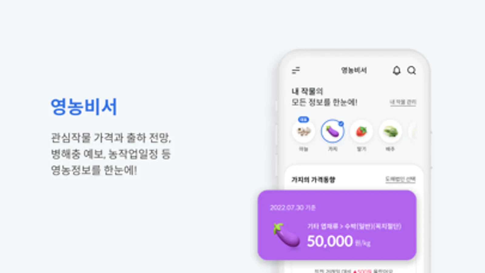 2. 영농비서 : 관심작물 가격동향, 거래동향, 가격전망, 병충해 방제, 농작업 일정, 영농정보