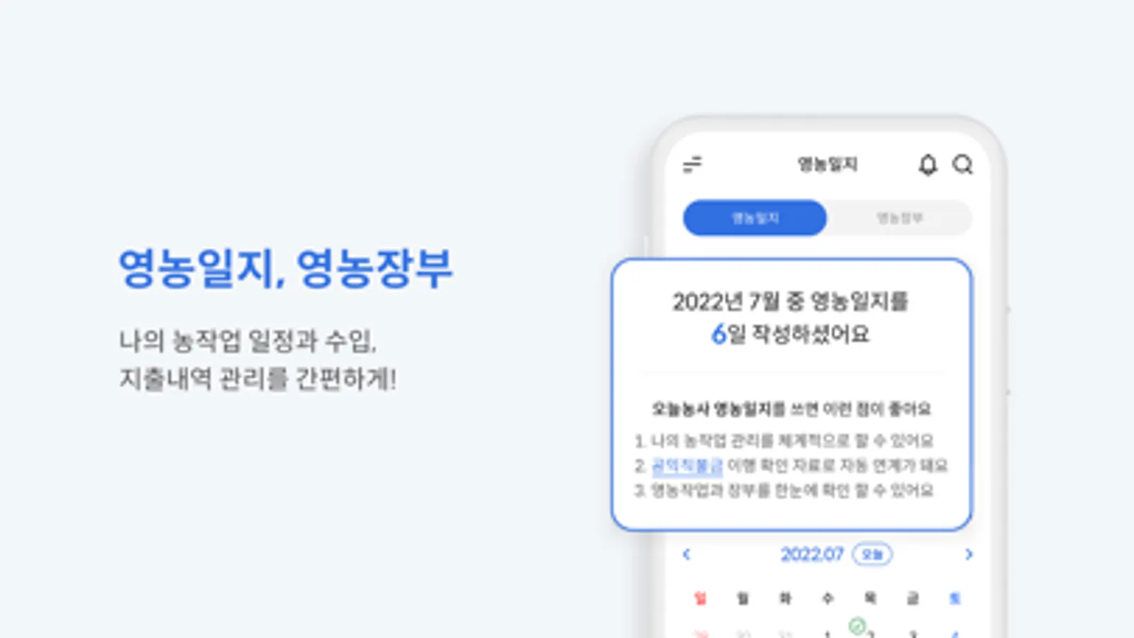 4. 영농일지 : 일지/장부 메인, 영농일지 작성, 영농장부 조회