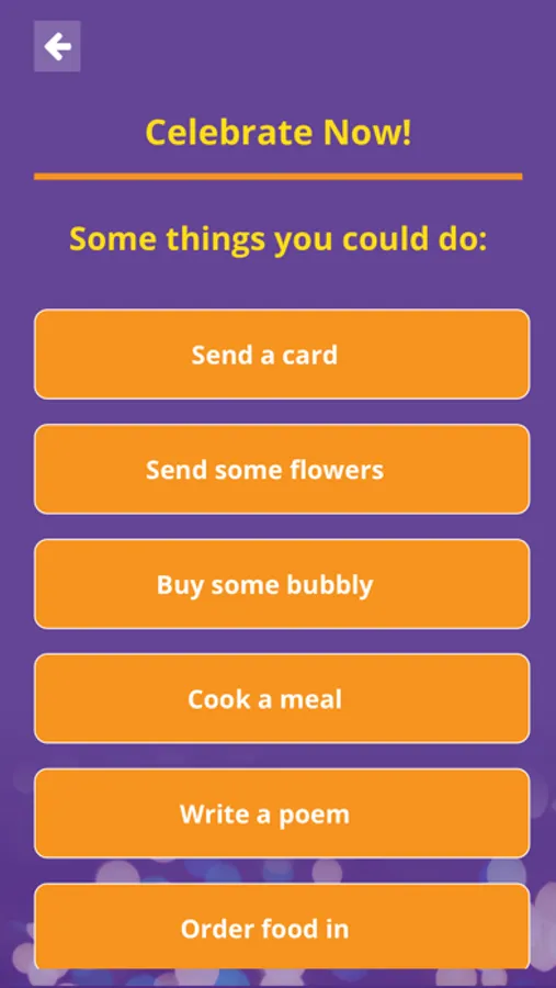 Choose what you want to celebrate, then tap to get some great ideas on how to get the party started. Flowers, chocolate or wine? We’ll give you great deals. Jewellery or a special gift? We’ve got just the thing. Dinner out, dinner at home or cooking a meal? Our partners have got you covered.Our partners are chosen to match our philosophy of fairness, buying local and quality. We’ll even connect you to expert assistance for writing a poem or drawing a picture. We’ve got this celebration stuff sorted for you.