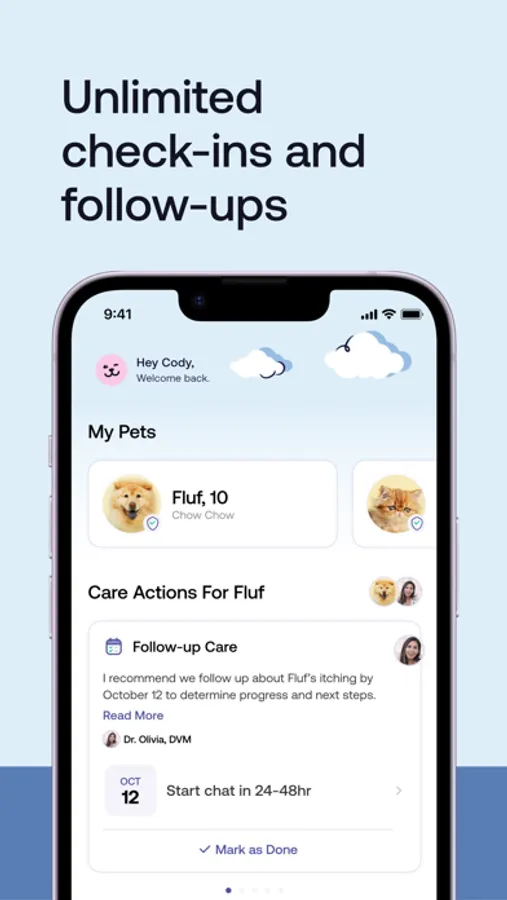 You can text or video chat with licensed veterinary professionals as many times as you need to. Ask a vet your everyday pet questions as well as seek advice for urgent and emergency issues. Get a second opinion that isn’t the search engine. Ask follow-up questions when they come to your mind.
