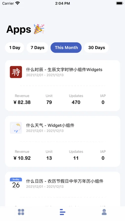 View data according to 4 latitudes: daily, weekly, monthly and 30 days, with simple and atmospheric and simple pages.