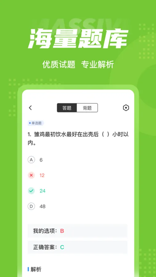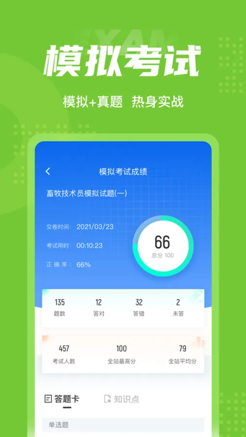 畜牧技术员题库内含考点练习,全国通用卷以及地区卷模拟练习,以及按照固定考试比重的随机式的抽题的真题考场,成绩单实时记录考试数据,一点一滴的反馈考生近期学习状态以及自我正确率的提升,大大的给予考生通过考试的信心。