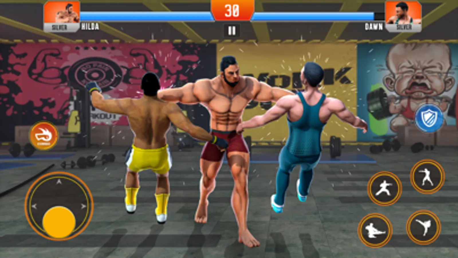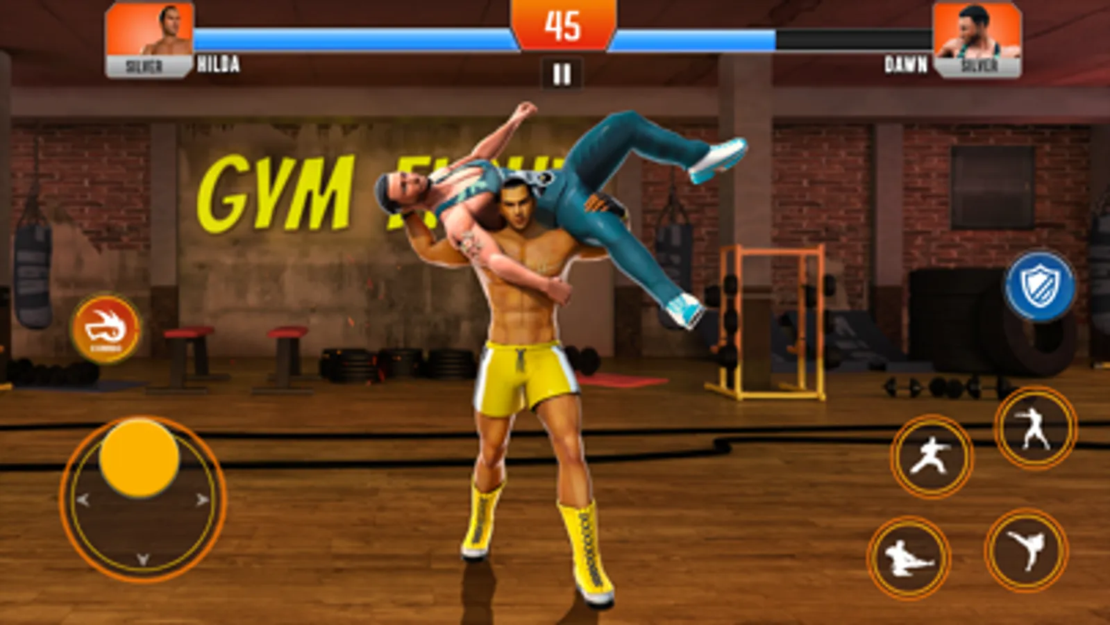 In this fighting and wrestling game you will be fight with other unknown player and win the fight to achieves the winning points to unlock the other gym materials and use them to improve your bodybuilding skills and then fight with other famous wrestlers on the wrestling board arena 3D. You will also learn boxing rules, gym fighting rules, karate rules and bodybuilding rules. when you are in the fighting arena you fight hand to hand, unarmed with your punches & kicks. when you win the fight, you got the different types of bodybuilding trophies and gym fighting rewords. So, quickness is to win hand to hand gym fighting game and take timely quick decisions to attack on enemy and block the enemy kicks and punches. Play and enjoy the Real Gym fighting Stars: Wrestling games in 3d games actions and beat the bodybuilding, wrestling and Karate awards.
