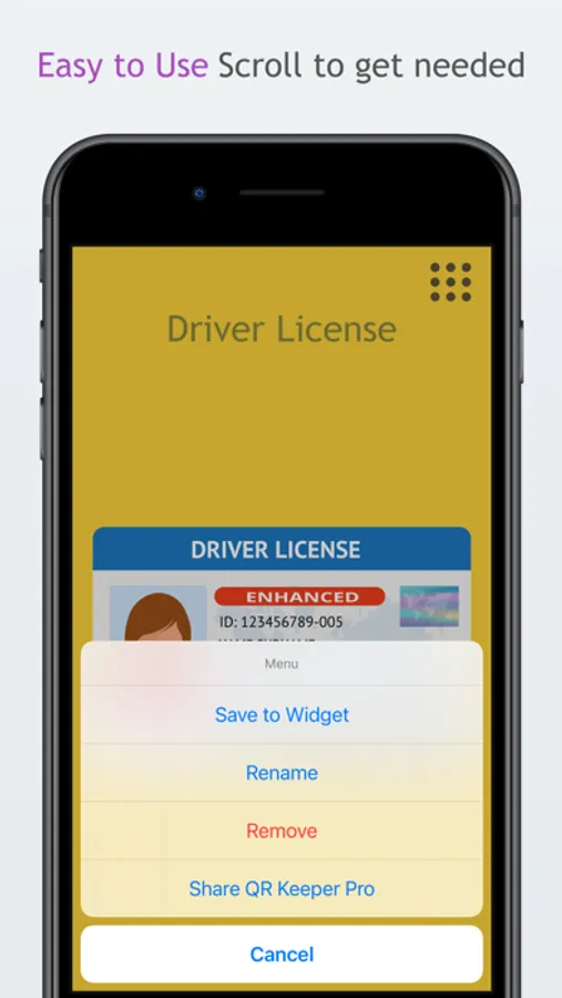 The application allows you to add your QR codes - cinema tickets, ski-passes, etc to a widget on home screen. You can also add any other documents - driver license, student id or something else. The application is small and fast - it launches less than in a second.