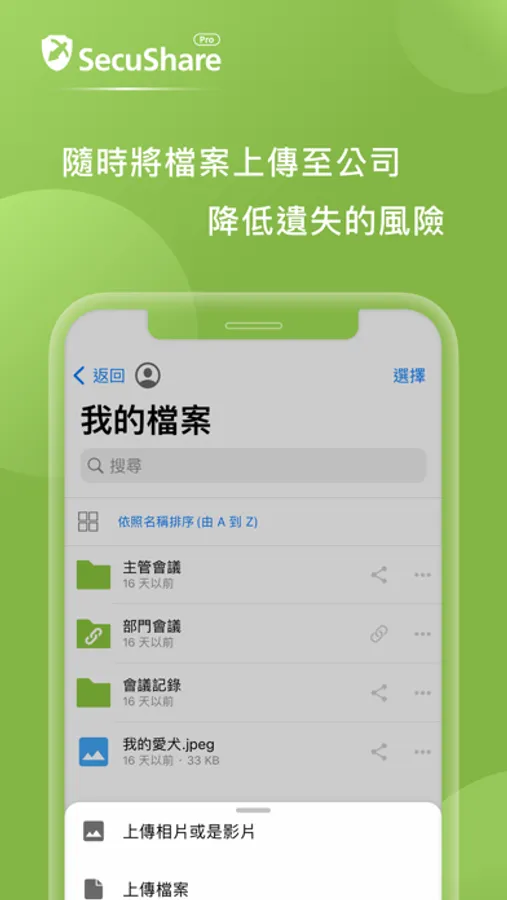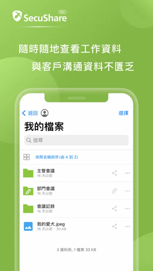 SecuShare Pro 提供企業級私有雲端儲存方案,而使用者可以透過iOS設備連線,隨時隨地存取自己或被分享的檔案或資料夾。同時,其他人使用電腦/手機/平板也可以隨時與您進行協同合作,同步存取分享資料。