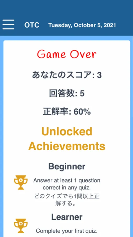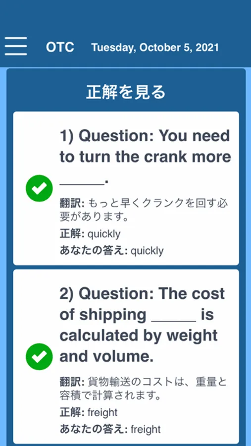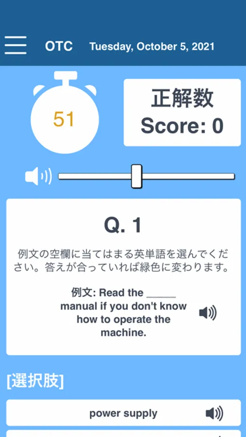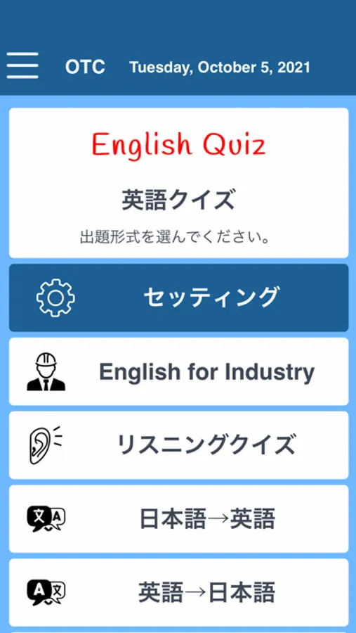 以下のような出題形式のクイズがあります。全て日本語訳と英文音声が付いています。