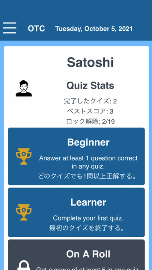 自分のニックネームを登録するとご自分の学習ステージが確認できます。