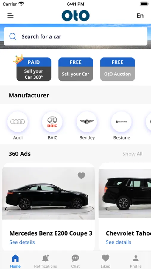 OtO is the first online auto marketplace ( App + website ) in Jordan and the Middle East that lists new and used cars using 360 technology in addition to many other distinctive features. Now you can list your car for free on our app with very easy steps. Or you can fill the form to list your car using 360 technology, which enables viewers to see a full exterior and interior view of your car! The third feature on our app is the 48-hour auction which enables car owners, who are willing to sell their cars urgently, to receive the highest purchasing price from our verified car dealers in Jordan!