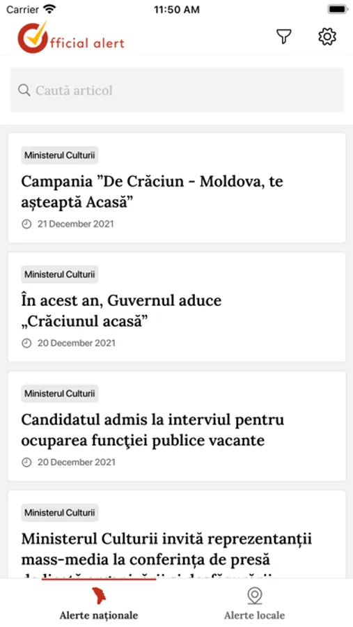Official Alert este aplicația care permite utilizatorilor să primească notificări atunci când sunt actualizate paginile web ale instituțiilor oficiale: ministere, agenții etc.