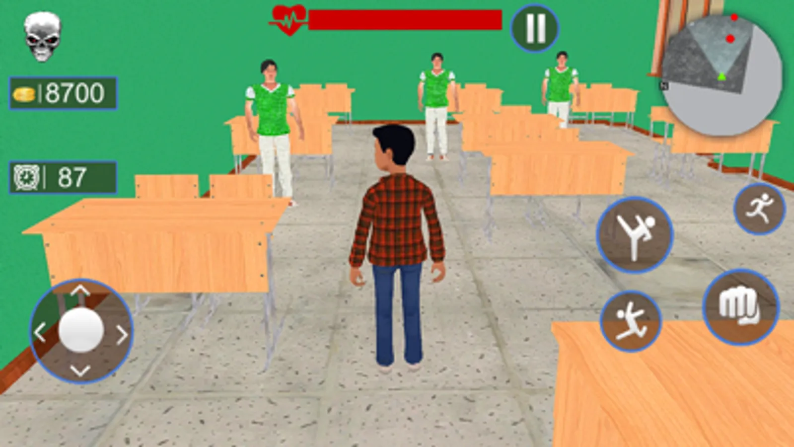 Enroll yourself in a high school simulator. Fight with bully boys in the school like a ninja and save your classmates from the bad guys in the anime school games. Use pro Kung Fu skills and karate fighting skills to defeat bully gangsters during bully boy fighting in high school. Face various bullies in the gangster bully high school game. Play various high school fighting challenges and levels in the bully school boy fight game.