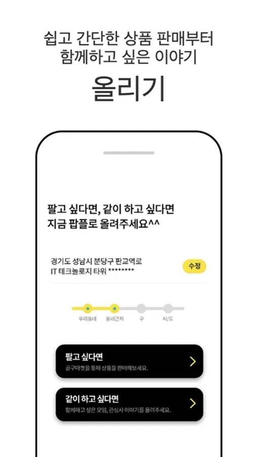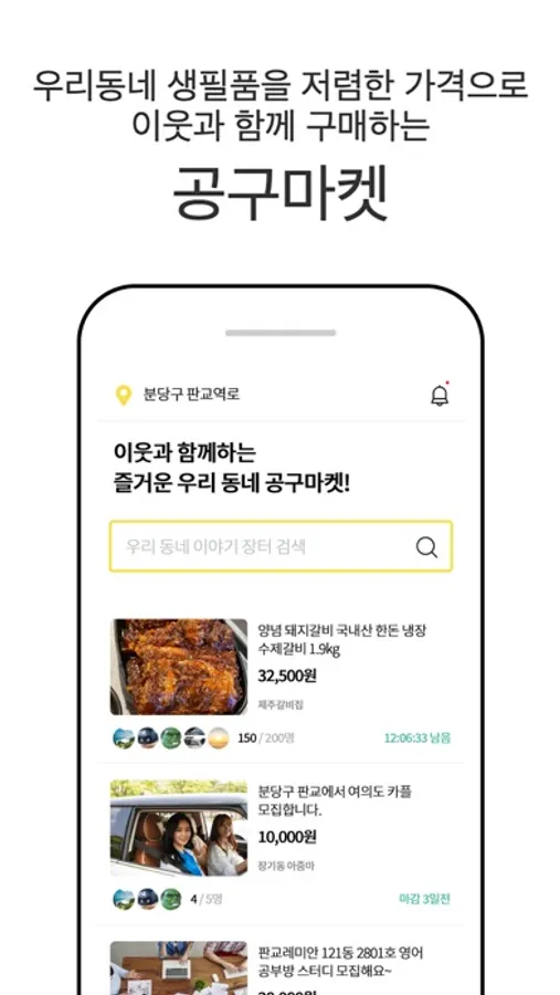 또한 동네 이웃 주민이 판매하는 개인 상품까지 신뢰할 수 있는 우리 동네 개인 마켓 거래도 가능합니다.