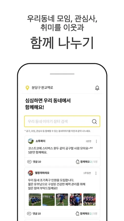 우리 동네 모임, 관심사, 취미를 이웃과 함께해요!