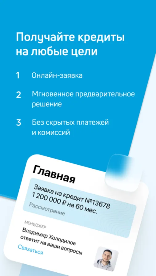 Достигайте своих целей и исполняйте мечты вместе с Credit.Club. Нужен кредит? Возьмите заём на честных условиях без посещений офиса. Ищите куда вложить деньги? Сделайте сбережение и получайте уверенный доход.