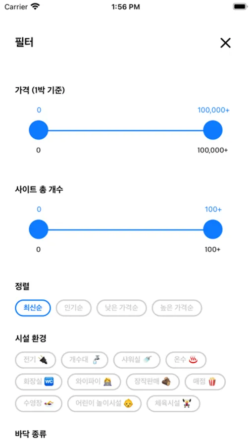 차박, 애견, 아이들 시설, 카라반 입장여부 까지 한번에 필터로 검색 가능해요!