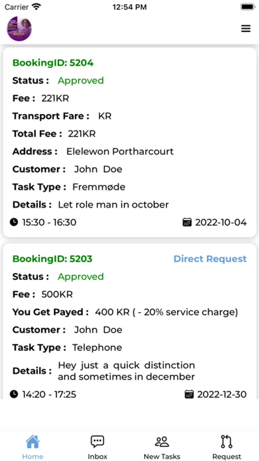 - se aktive og tidligere bestillinger